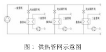 城市供熱管網(wǎng)系統(tǒng)是由多個(gè)串并聯(lián)管段組成的管路系統(tǒng),是城市集中供熱系統(tǒng)的重要組成部分。為滿足各熱用戶個(gè)性化供暖需求,實(shí)現(xiàn)系統(tǒng)的節(jié)能降耗,分戶計(jì)量控制供暖系統(tǒng)形式正在逐步推廣。由于采暖用戶的自主調(diào)節(jié),連接系統(tǒng)一、二級(jí)管網(wǎng)的換熱站應(yīng)隨著用戶末端進(jìn)行調(diào)節(jié)。首先是在二級(jí)管網(wǎng)側(cè)通過循環(huán)水泵的變頻,來保證二級(jí)管網(wǎng)某處的供、回水壓差不變,目的是穩(wěn)定因末端用戶用熱的改變而對(duì)管網(wǎng)水力工況的影響,然后,改變一級(jí)管網(wǎng)側(cè)的供熱參數(shù)來確保二級(jí)管網(wǎng)側(cè)的供水溫度、及供回水溫差的穩(wěn)定。在這一過程中,一級(jí)管網(wǎng)側(cè)實(shí)際上是按照二級(jí)管網(wǎng)側(cè)所需的供熱量在進(jìn)行被動(dòng)調(diào)節(jié)。然而,管網(wǎng)系統(tǒng)中各管路水力工況相互影響,系統(tǒng)中任何一個(gè)調(diào)節(jié)裝置的工作參數(shù)發(fā)生改變,必然會(huì)引起各熱用戶(換熱站)之間流量的重新分配。當(dāng)各換熱站一級(jí)管網(wǎng)側(cè)均因二級(jí)管網(wǎng)側(cè)負(fù)荷的改變而各自進(jìn)行被動(dòng)調(diào)節(jié)時(shí),由于各換熱站管路間水力工況相互影響,就必然會(huì)導(dǎo)致系統(tǒng)水力、熱力失調(diào),影響供熱效果。因此,為了提高供熱管網(wǎng)整體的運(yùn)行調(diào)節(jié)與控制水平,減小水力、熱力失調(diào),保證供熱穩(wěn)定性,必須將換熱站一級(jí)管網(wǎng)各自的被動(dòng)調(diào)節(jié)進(jìn)行統(tǒng)一管理和控制。