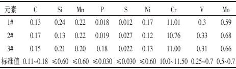 在1#、2#和3#調(diào)節(jié)閥上取樣,測(cè)試了調(diào)節(jié)閥的化學(xué)成分,分析結(jié)果如表1所示。由表1可知,3根調(diào)節(jié)閥的化學(xué)成分都符合標(biāo)準(zhǔn)B/HJ479-2006的規(guī)定。